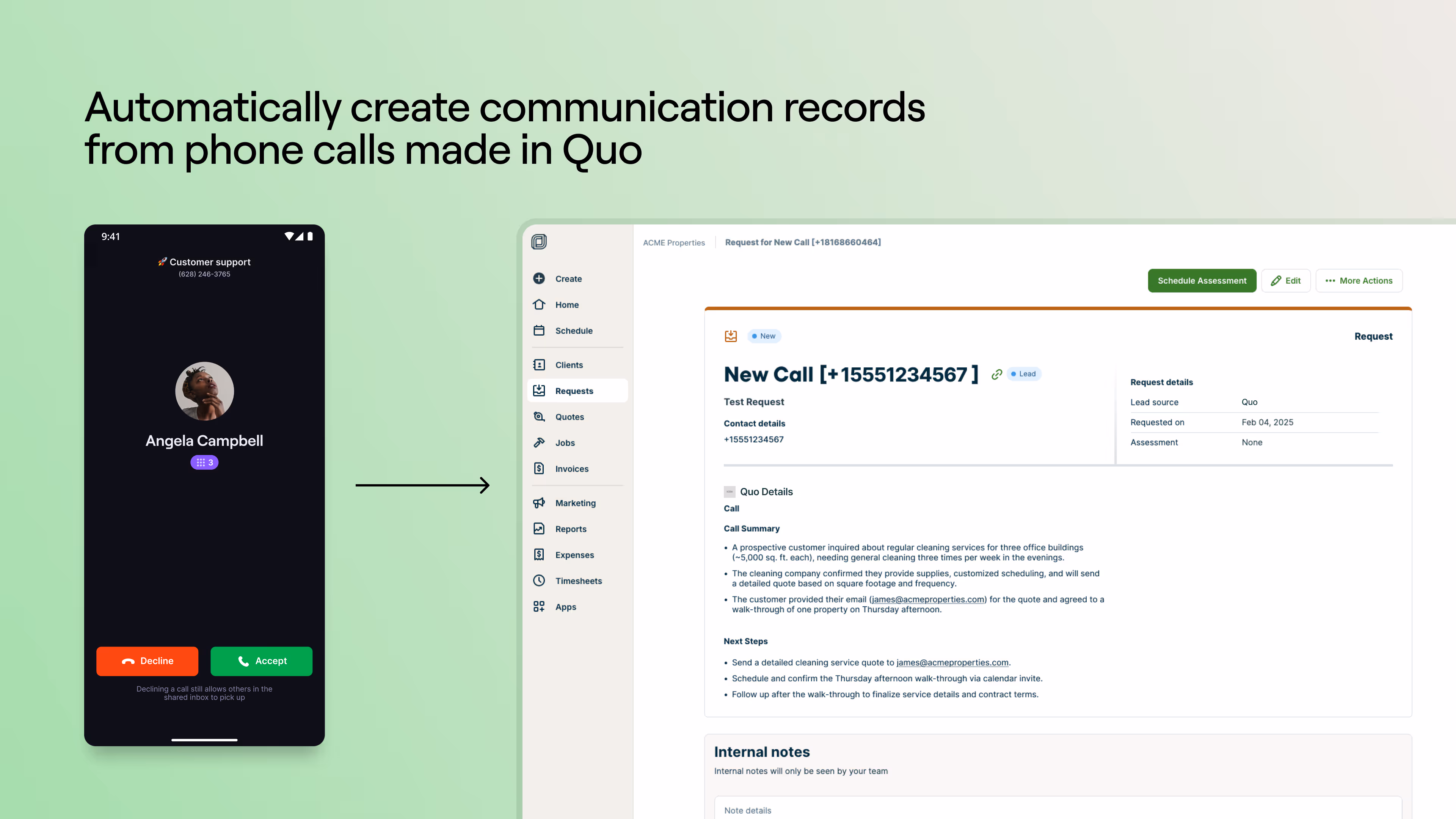 Automatically create a Client and Request in Jobber whenever a new lead calls your Quo number.