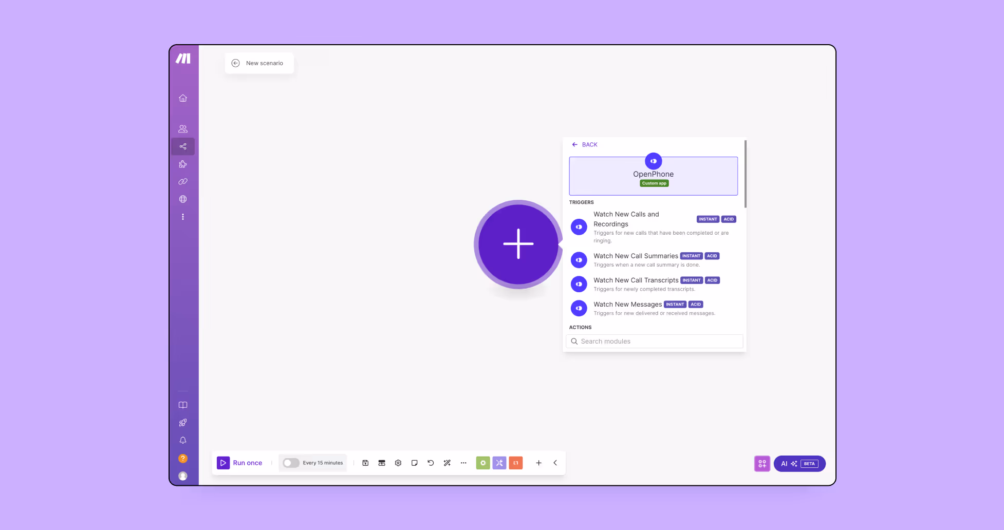 Make is a visual automation platform that lets you send information between Quo and thousands of apps with just a few clicks.